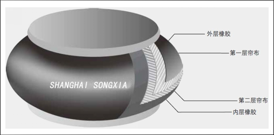 上海松夏空氣彈簧是一種帶有金屬端蓋的高技術彈性波紋管。我們的標準空氣彈簧一般由 4 層組成。