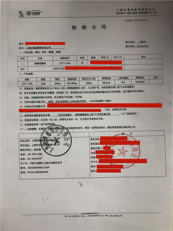 二、長沙市望城區(qū)澳海瀾庭配電工程干式變壓器安裝項(xiàng)目-彈簧減震器銷售合同