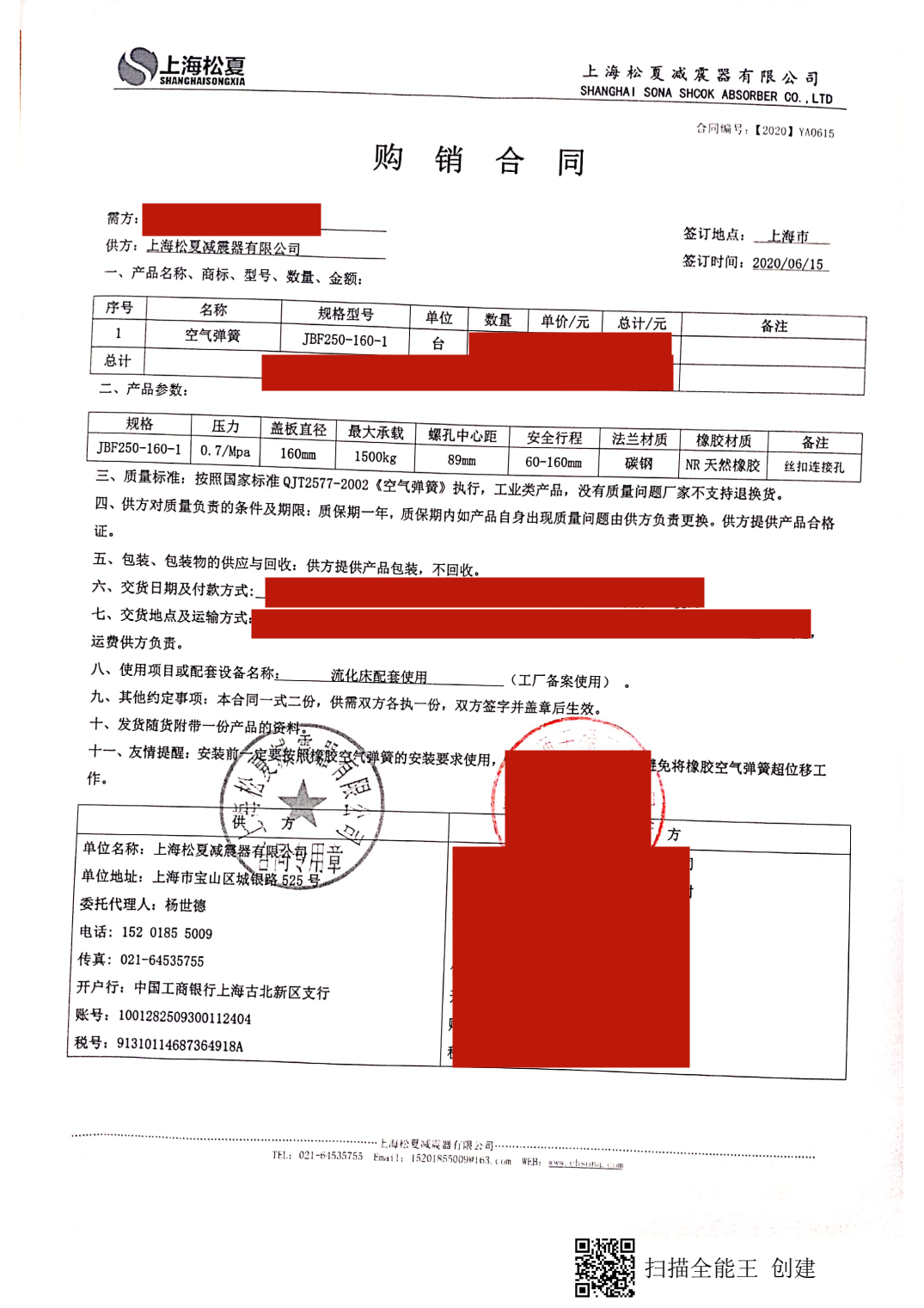 【流化床設(shè)備配套】上海松夏JBF250/160-1型空氣彈簧合同介紹: